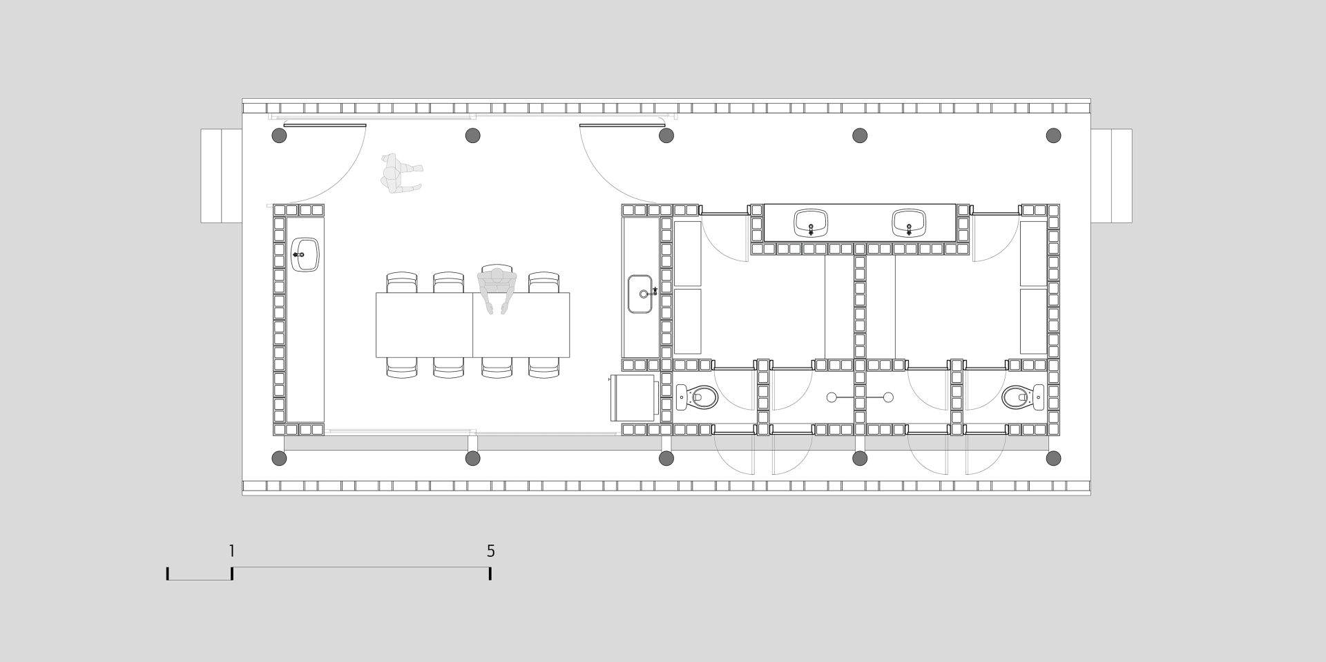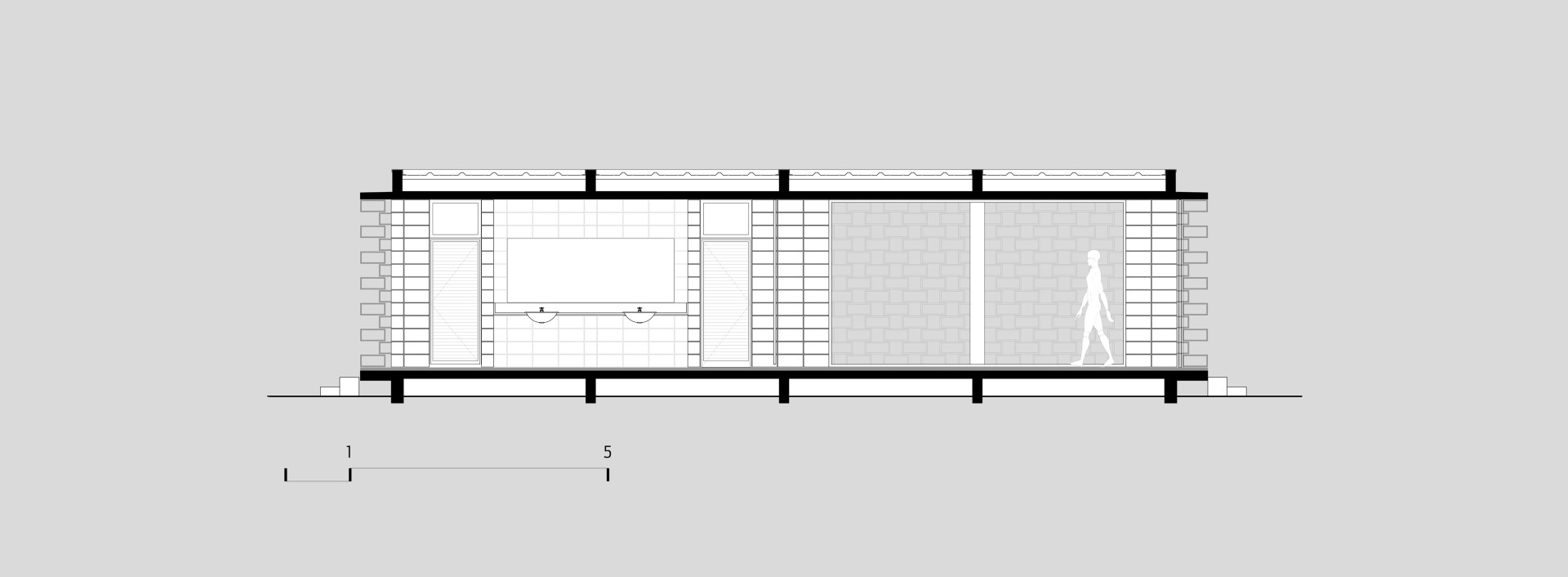 The project is basically constructed from a single element: the concrete block, so traditional in the Brazilian architecture. This material stands as structural element and all the project dimensions are modulated according to its size: precaste concrete panels as slab, terrazzo on the floor and glass screens. All the other materials keep neutral, emphasizing the concrete block as the most important element, which is visible in its original aspect, without covering or painting.