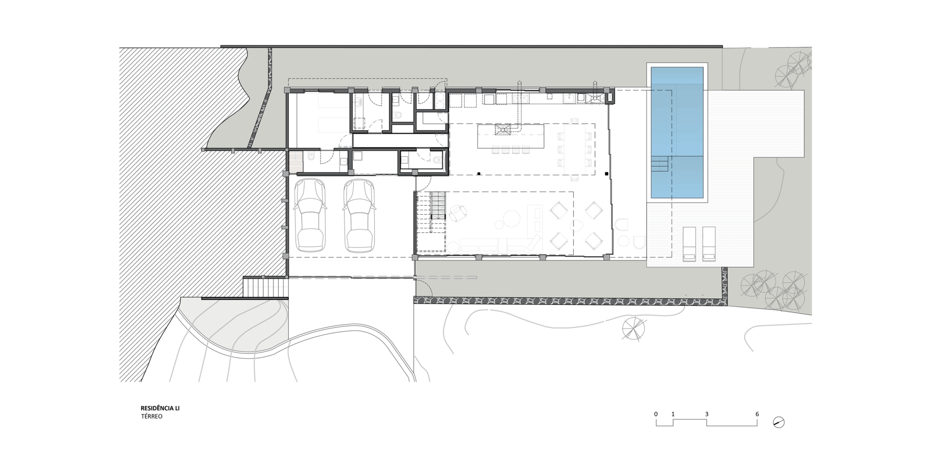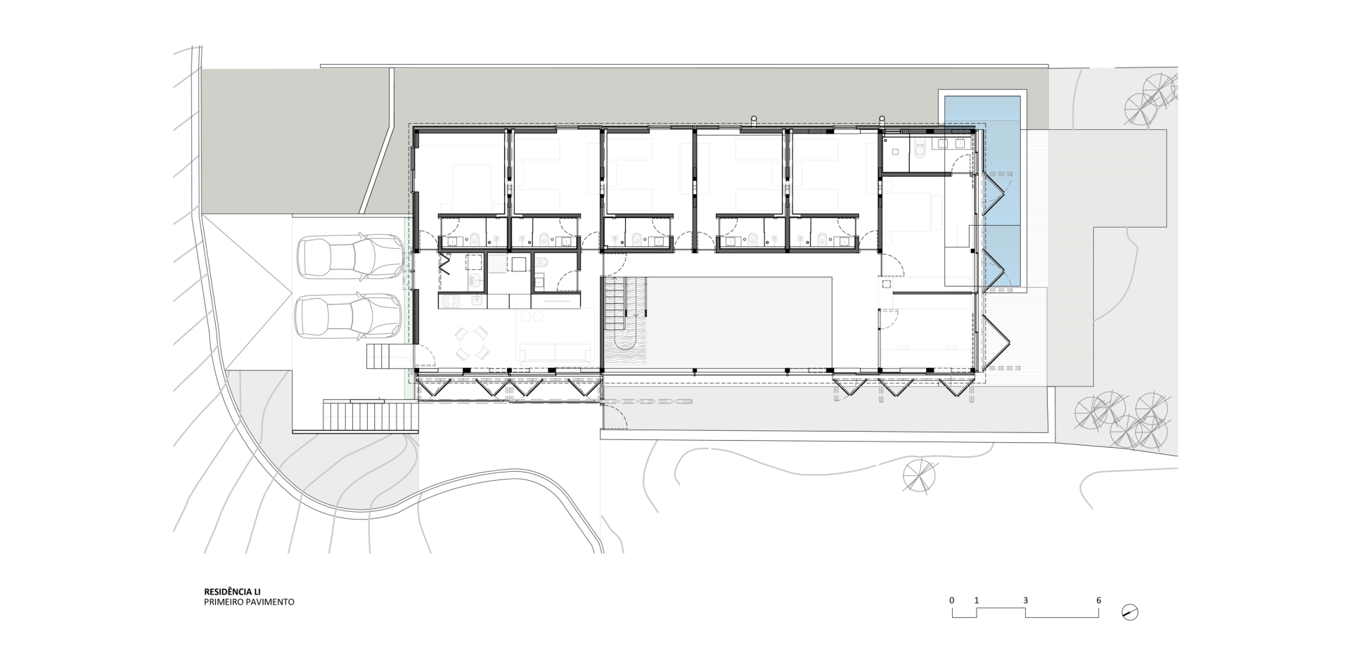 The design for the LI residence, located on a plot of land by the beach of Guaecá, in São Sebastião, on the northern coast of São Paulo, was based on the concept of creating two houses in one. The clients’ idea was to build a small rental house and a main vacation house that would accommodate the whole family.