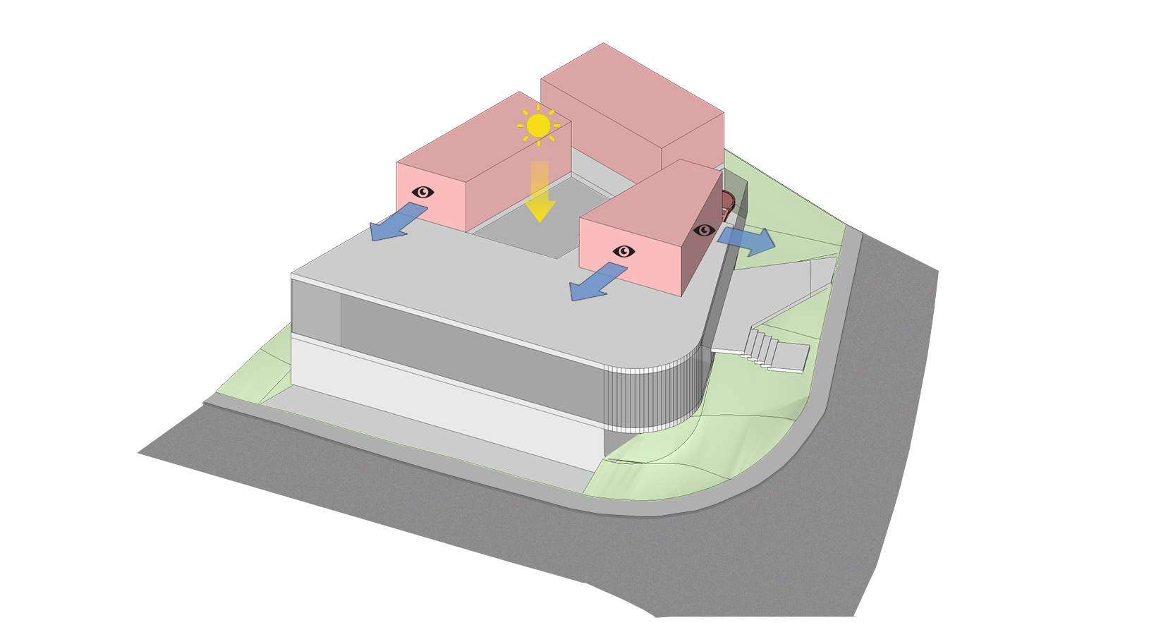 The strategic location of the site, positioned on a corner with access at different levels, played a crucial role in organizing the architectural program. By being located at an intermediate level, it made it possible to create a shelter for cars at the lowest street level, while pedestrian access was designed for the highest street.