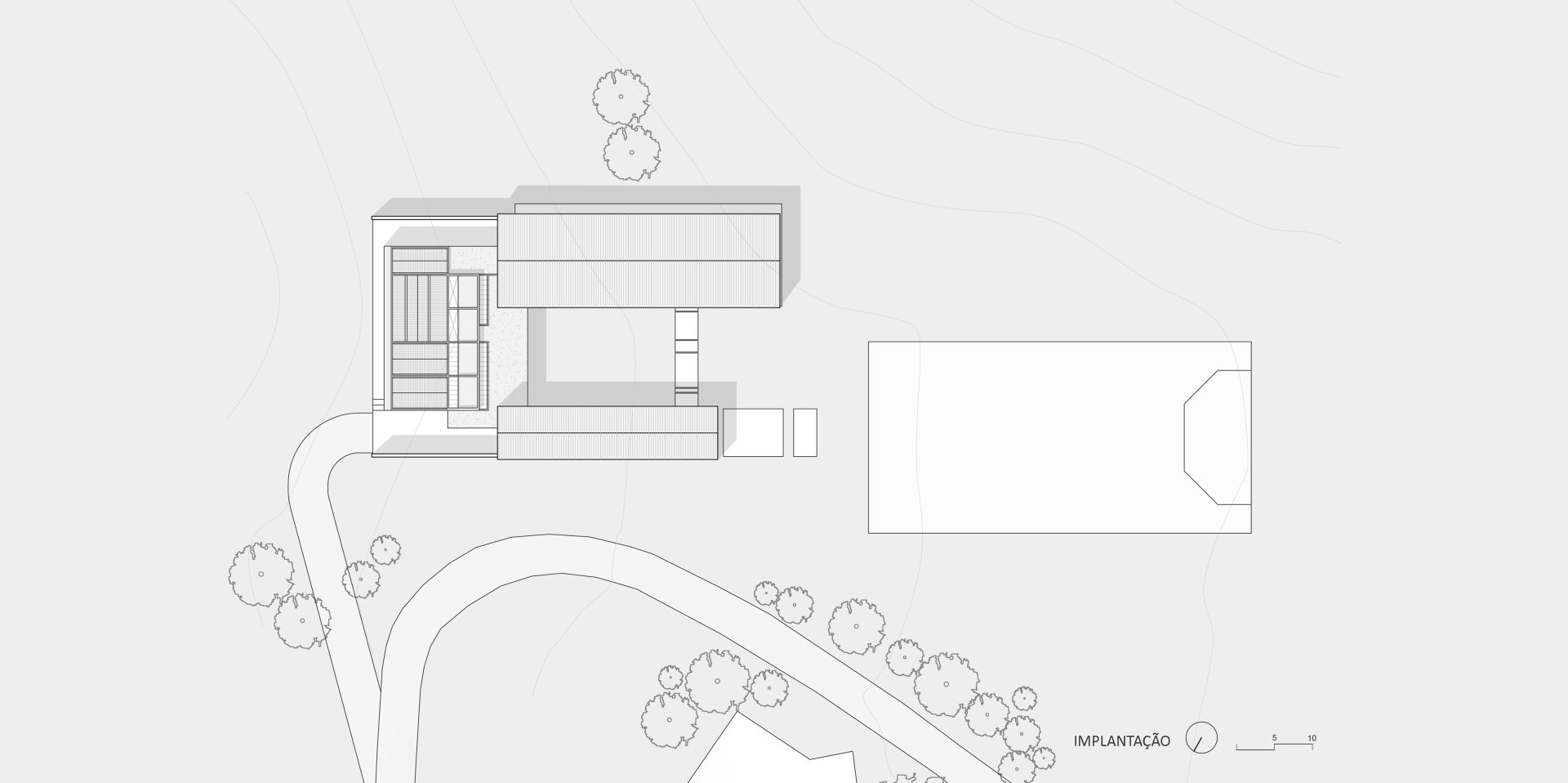 The approach to the site suggests an effective rereading of corrals in farms, usually composed by gable roofs, setting a patio. Moreover, the program organization considers service flows, accessibility for the guests, besides taking into account the privileged perspectives to surrounding landscape.